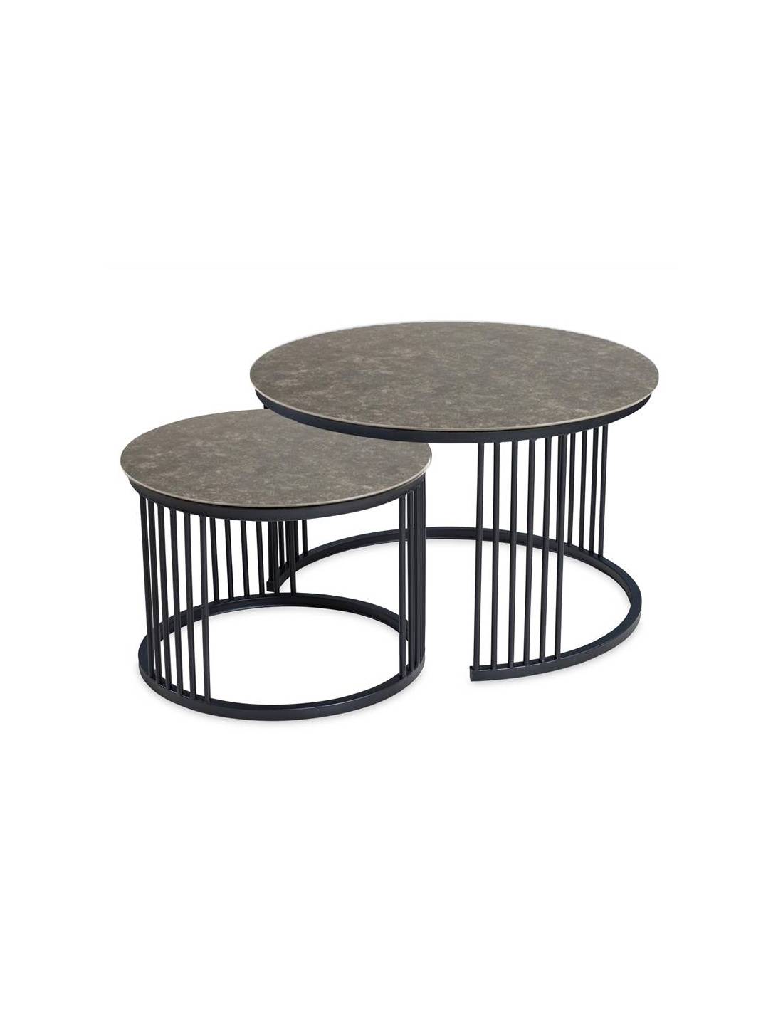ELON is a stylish set of coffee tables featuring brown ceramic tabletops that add a luxurious touch to any interior. The elegant design enhances the overall look of your living space while offering practical functionality.