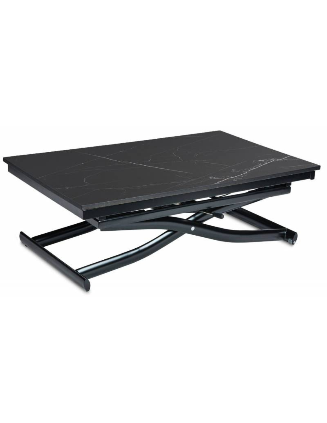 Black transforming coffee table that lifts and extends from 120 to 200 cm, easily converting into a functional dining table.