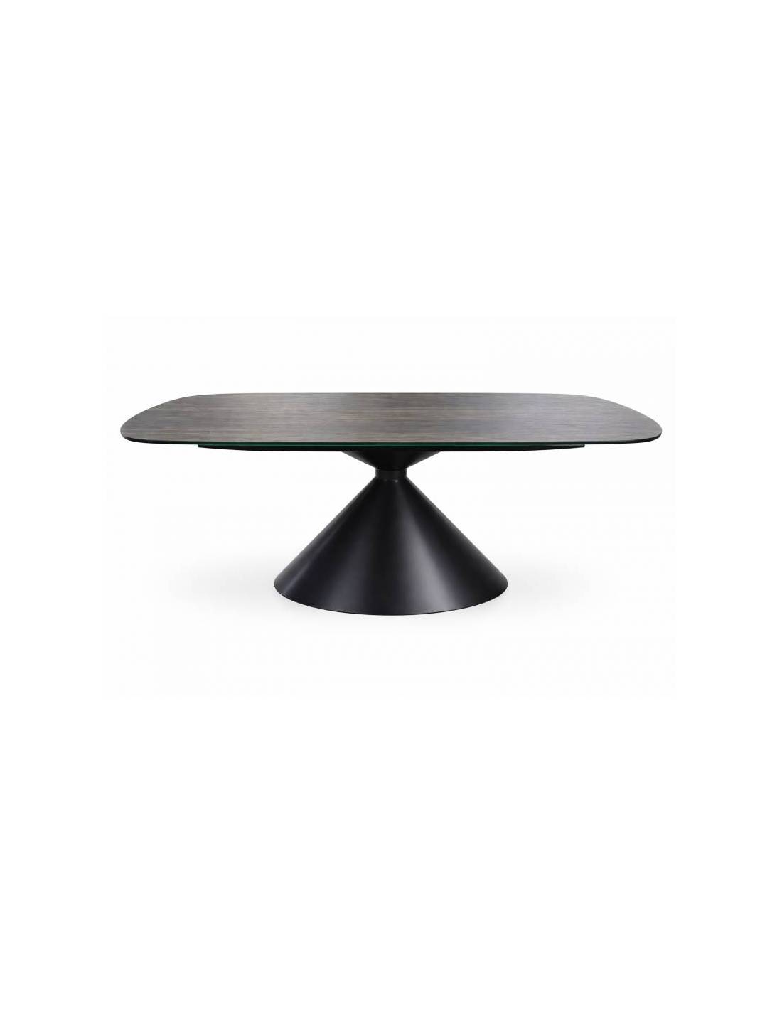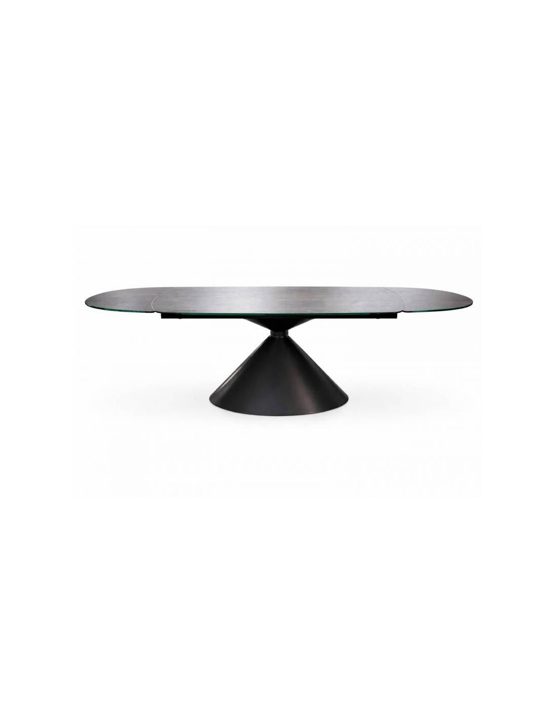 TRITONO is a modern and practical dining table designed for everyday comfort and larger gatherings. The extendable mechanism allows the table to expand from 160 to 240 cm, easily adapting to different needs. The brown ceramic tabletop offers a solid, elegant look and is resistant to wear, while the black metal legs provide stability and a contemporary touch. A perfect choice for those seeking a stylish and durable dining solution.