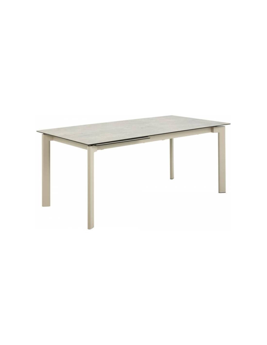 HURON is a modern and functional dining table designed for contemporary interiors. The grey-brown ANISTA ROUGH ceramic tabletop features a subtle stone texture with a slightly rough finish, adding a natural and refined look. The sand-colored powder-coated steel base ensures stability while maintaining a light visual feel. The extension mechanism allows the table to expand from 180 to 240 cm, with integrated storage for the extension leaf. A perfect blend of style, practicality, and durability.