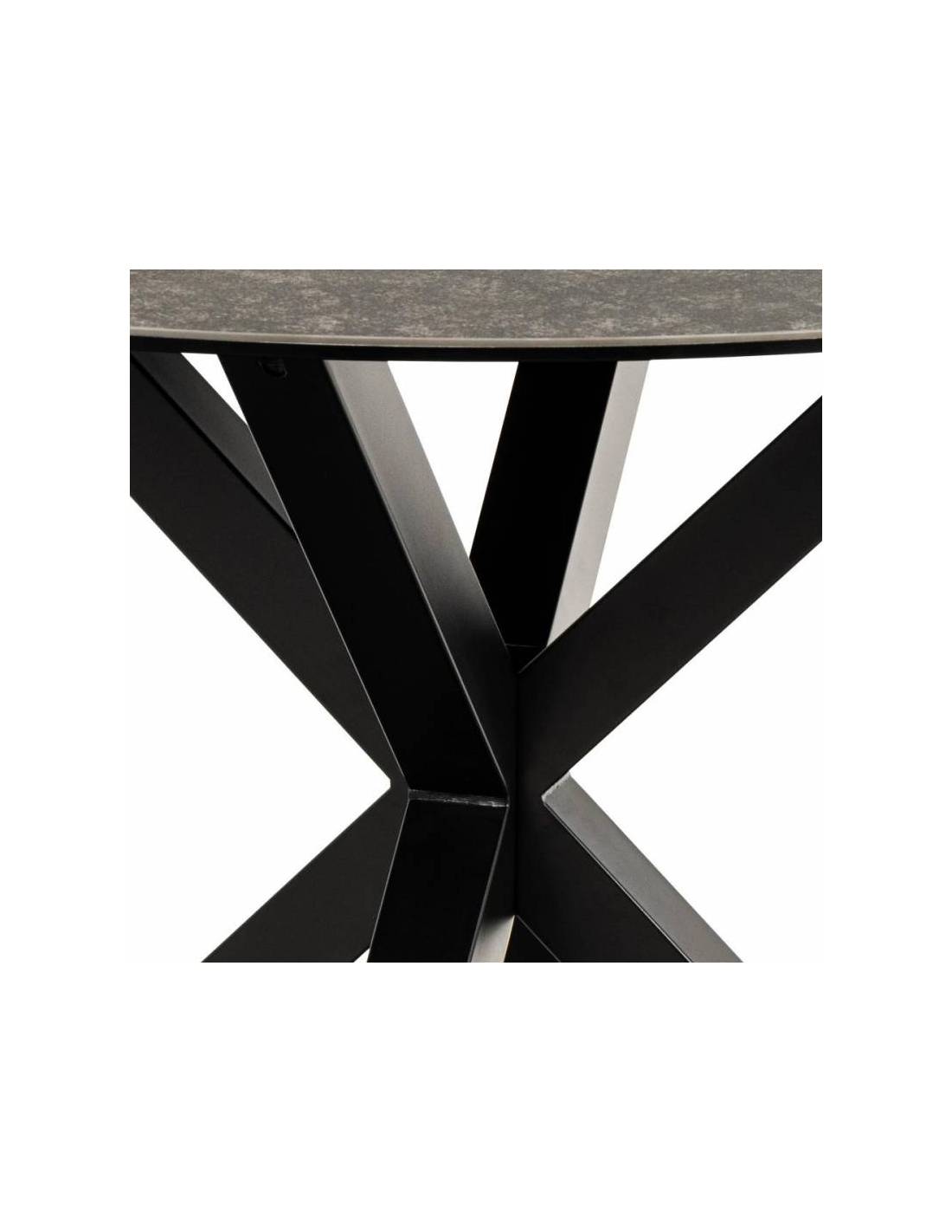TERRY is a round dining table featuring a black FAIRBANKS ceramic tabletop and metal legs. The surface is durable, resistant to heat and scratches, and easy to maintain, making it perfect for everyday use. Its compact round shape creates a cozy and stylish dining space.