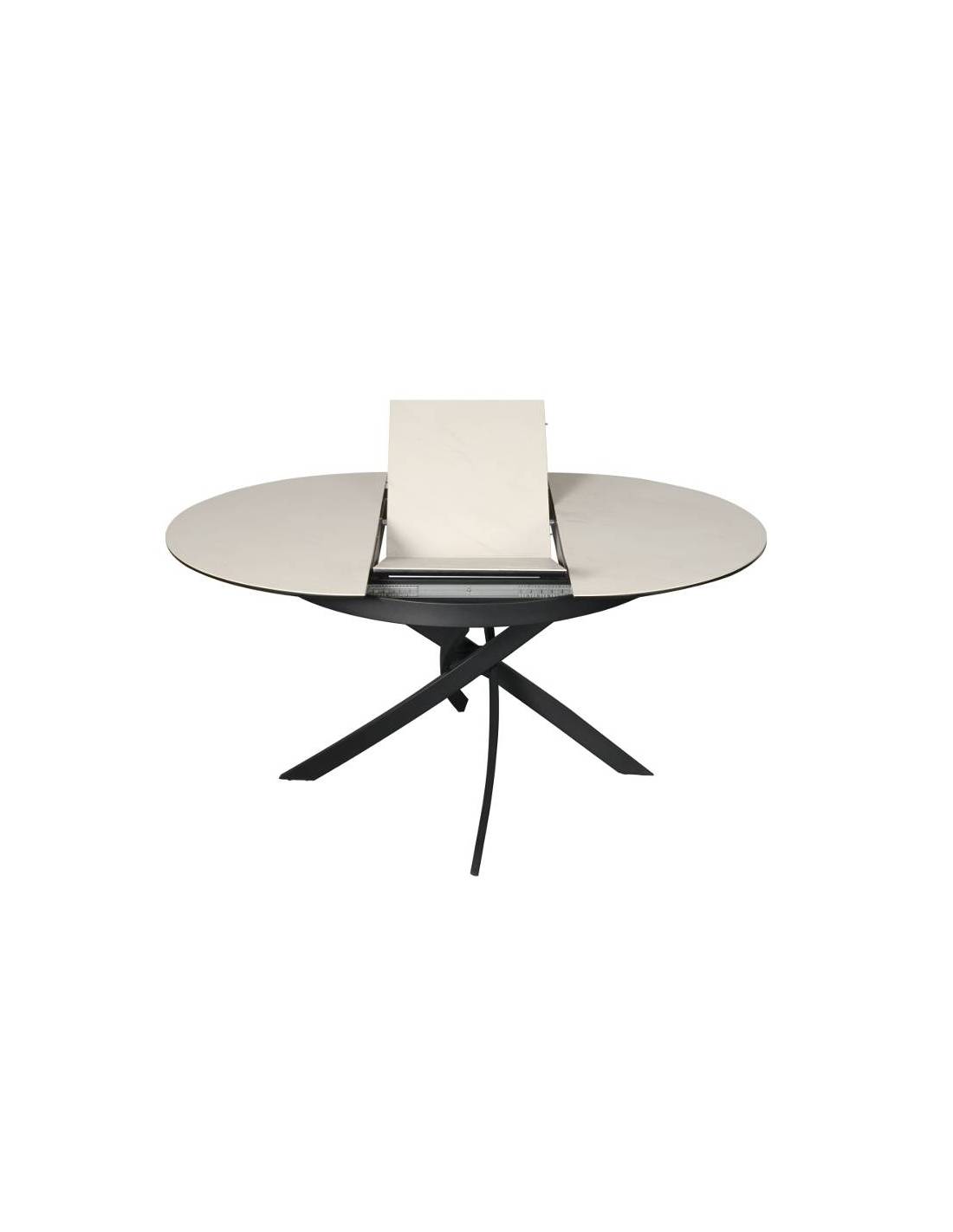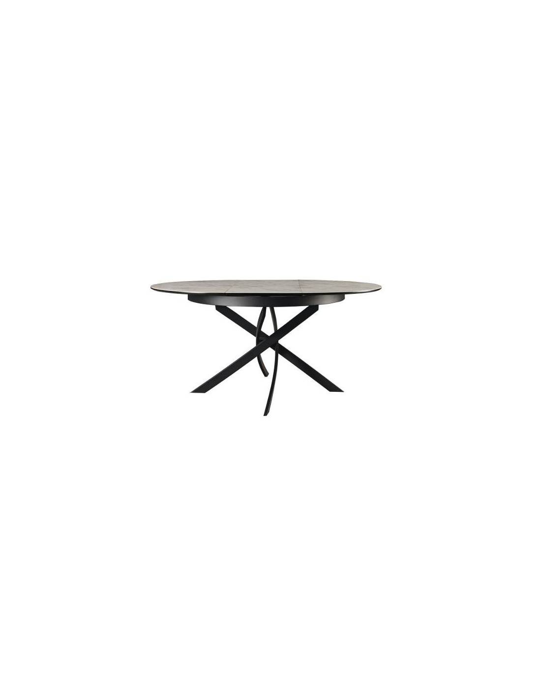 FREGO is a modern and stylish dining table, perfect for both everyday use and special occasions. The round tabletop features a white ceramic surface with subtle brown veining, resembling natural stone. Elegant black legs create a striking contrast and enhance its contemporary look. The extendable mechanism allows the table to expand from 100 to 139 cm in diameter, making it easy to adapt for family meals or larger gatherings. Its sturdy construction ensures stability, while the minimalist design fits seamlessly into both modern and classic interiors.